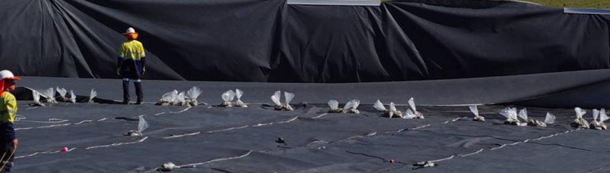 - When the geotextile is wet down, testing must take place quickly because the water will evaporate, particularly in a hot and dry climate such as is the case in the location where this installation took place. Leak detection testing can be undertaken at any time using bidim C;