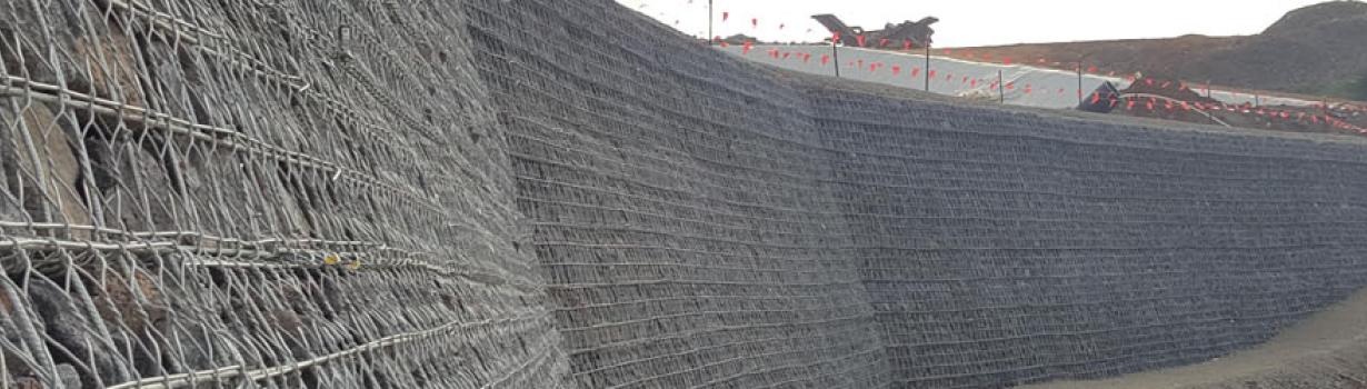 Geofabrics and Maccaferri provide a well-established and innovative system that can be dedicated to this application - the Green Terramesh System is customised for each specific project circumstance. The lid, face element and tail lengths of the Green Terramesh System are all adjustable and the integral frame work facilitates rapid erection and wall construction.